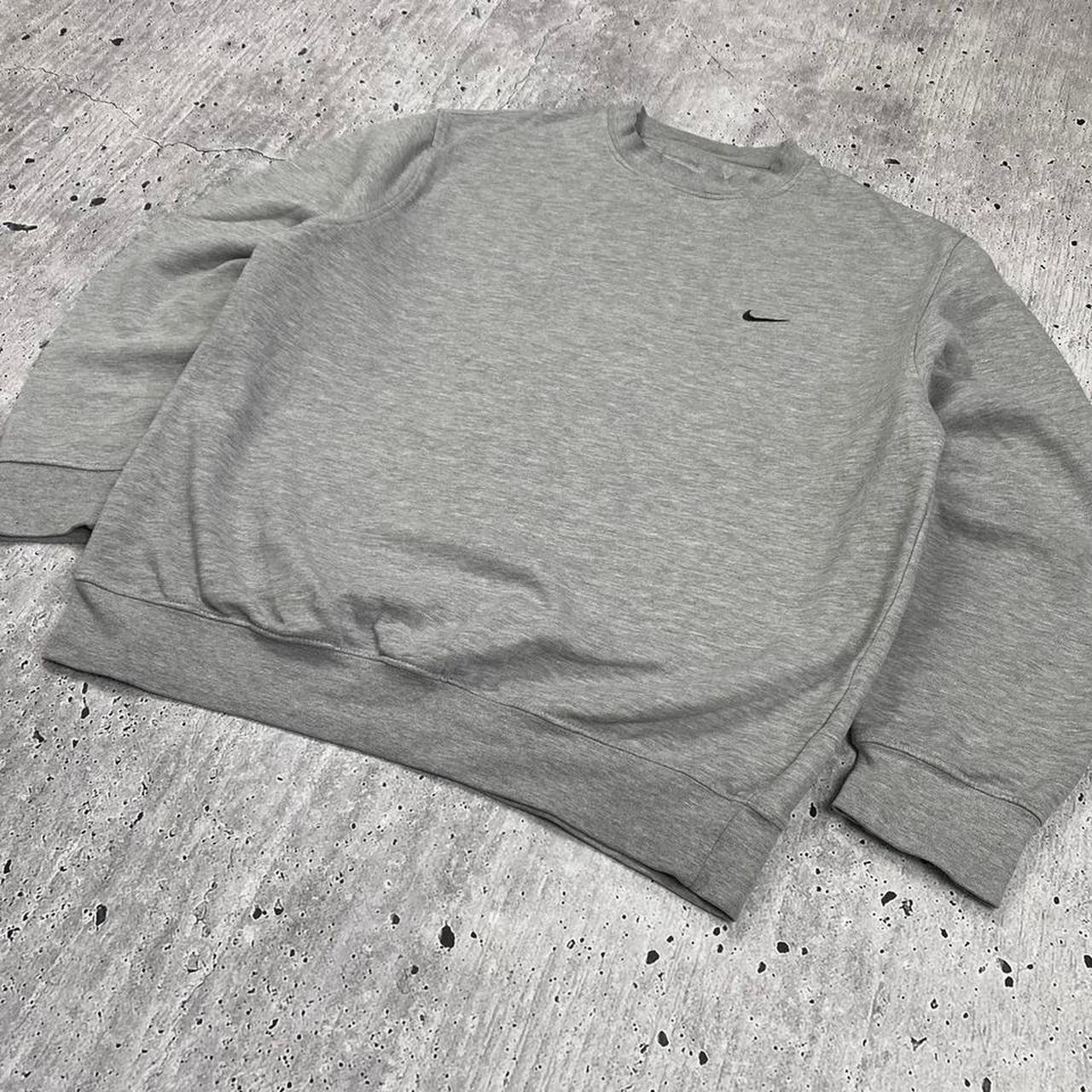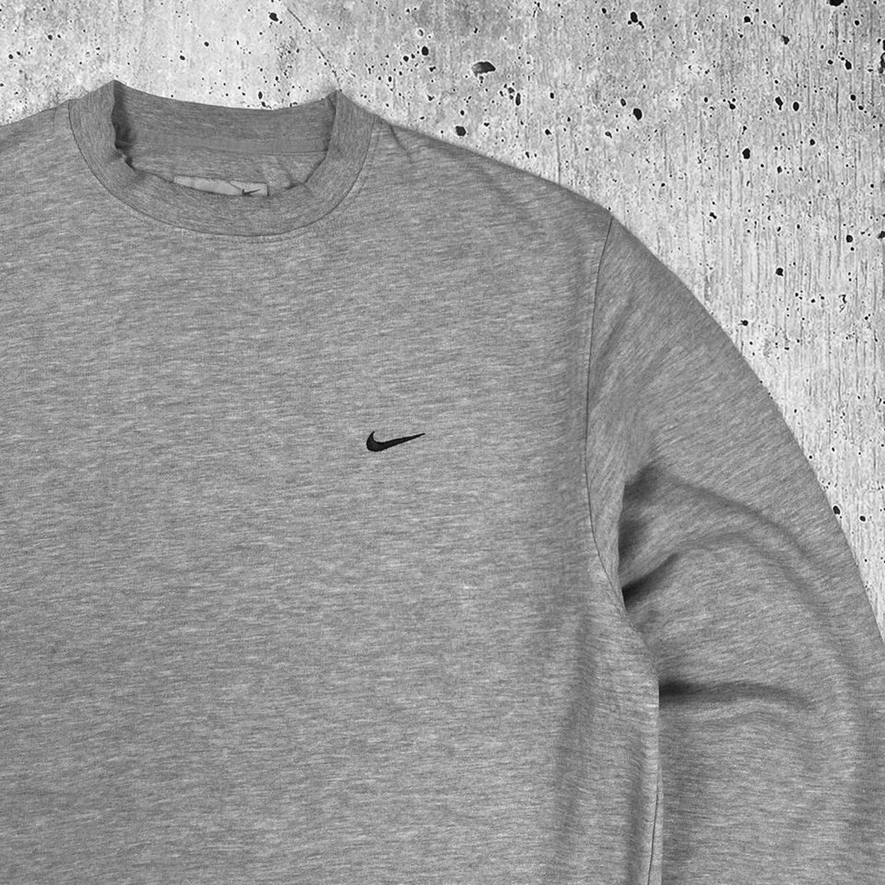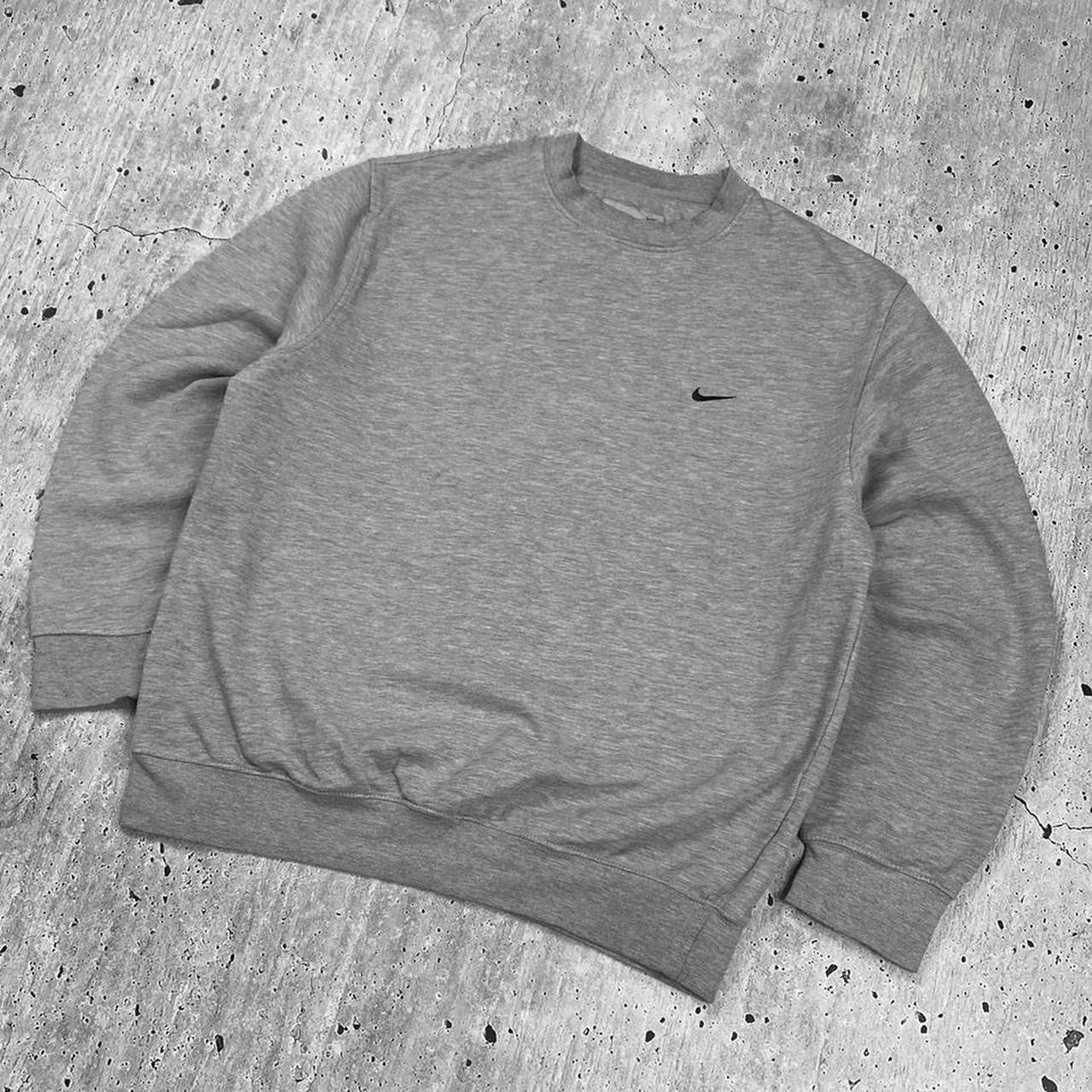 Vintage light grey Nike sweatshirt with embroidered Nike swoosh logo on chest. Heavy quality material.
