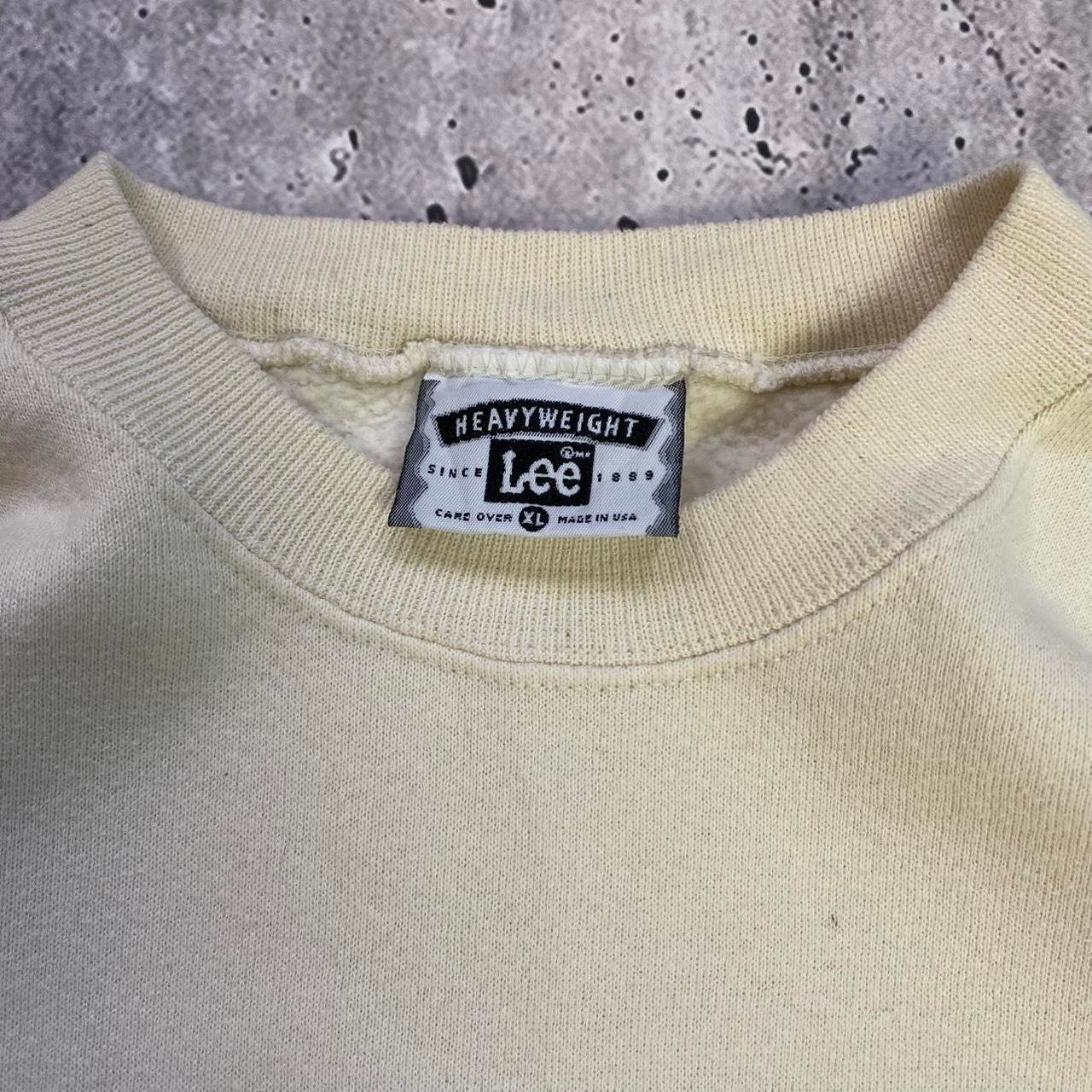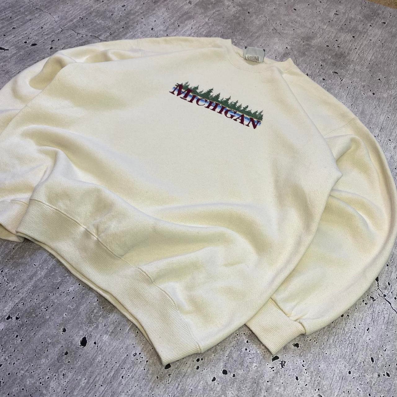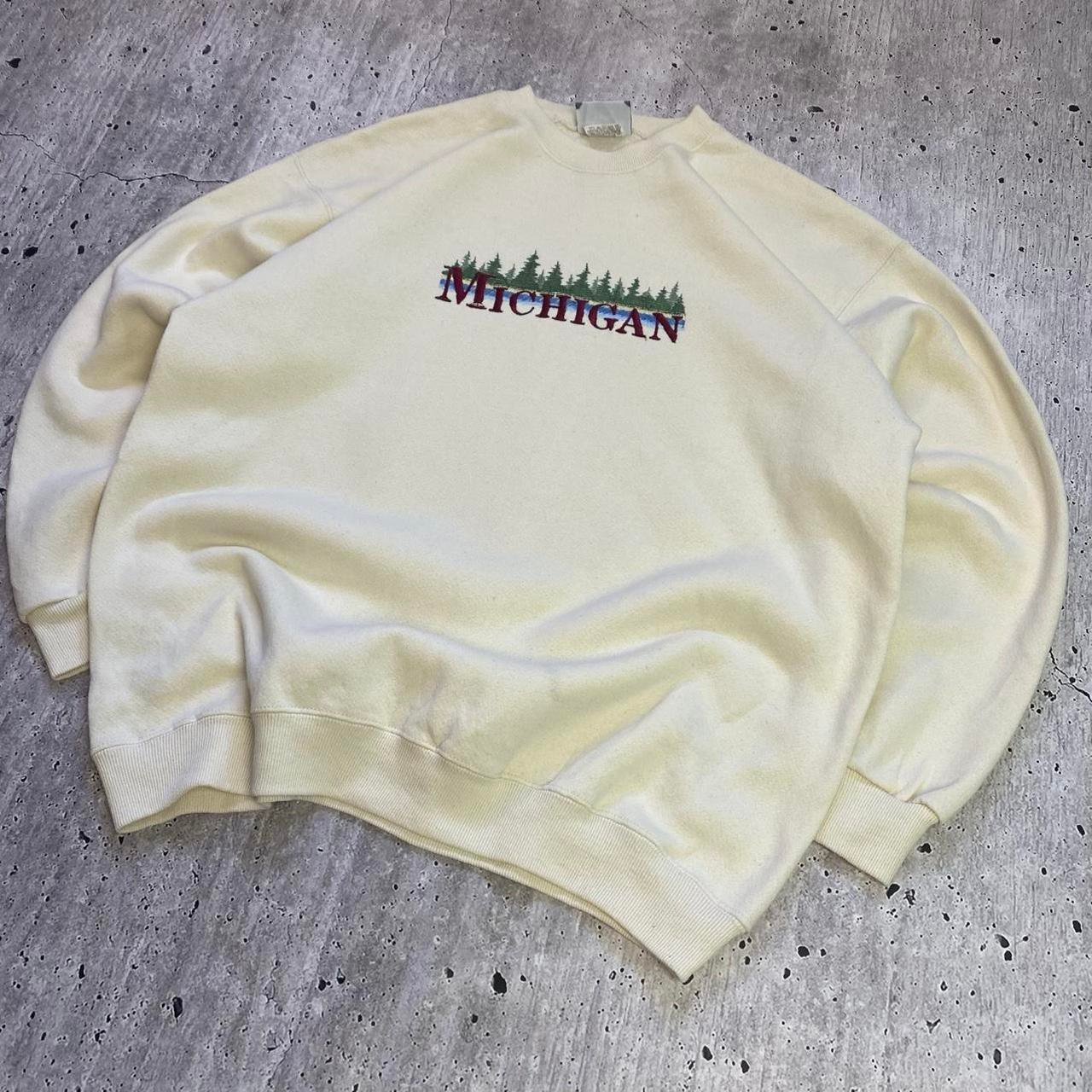 Vintage 90s cream Lee American souvenir sweatshirt with large embroidered Michigan graphic across front.
