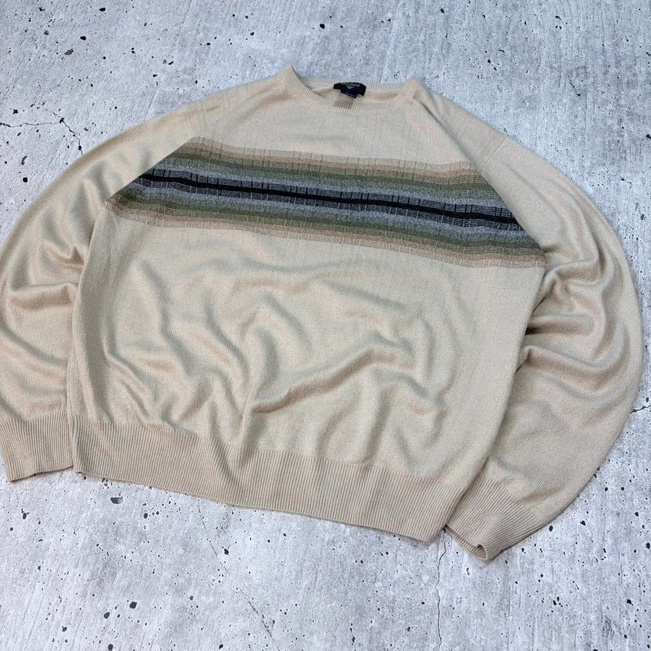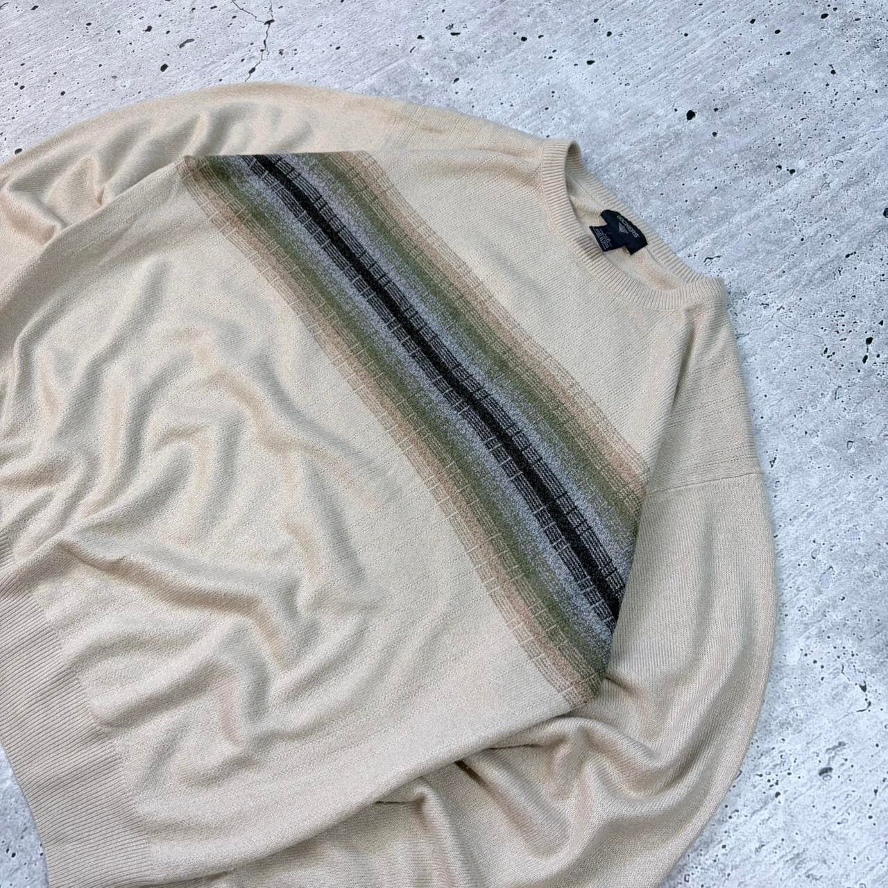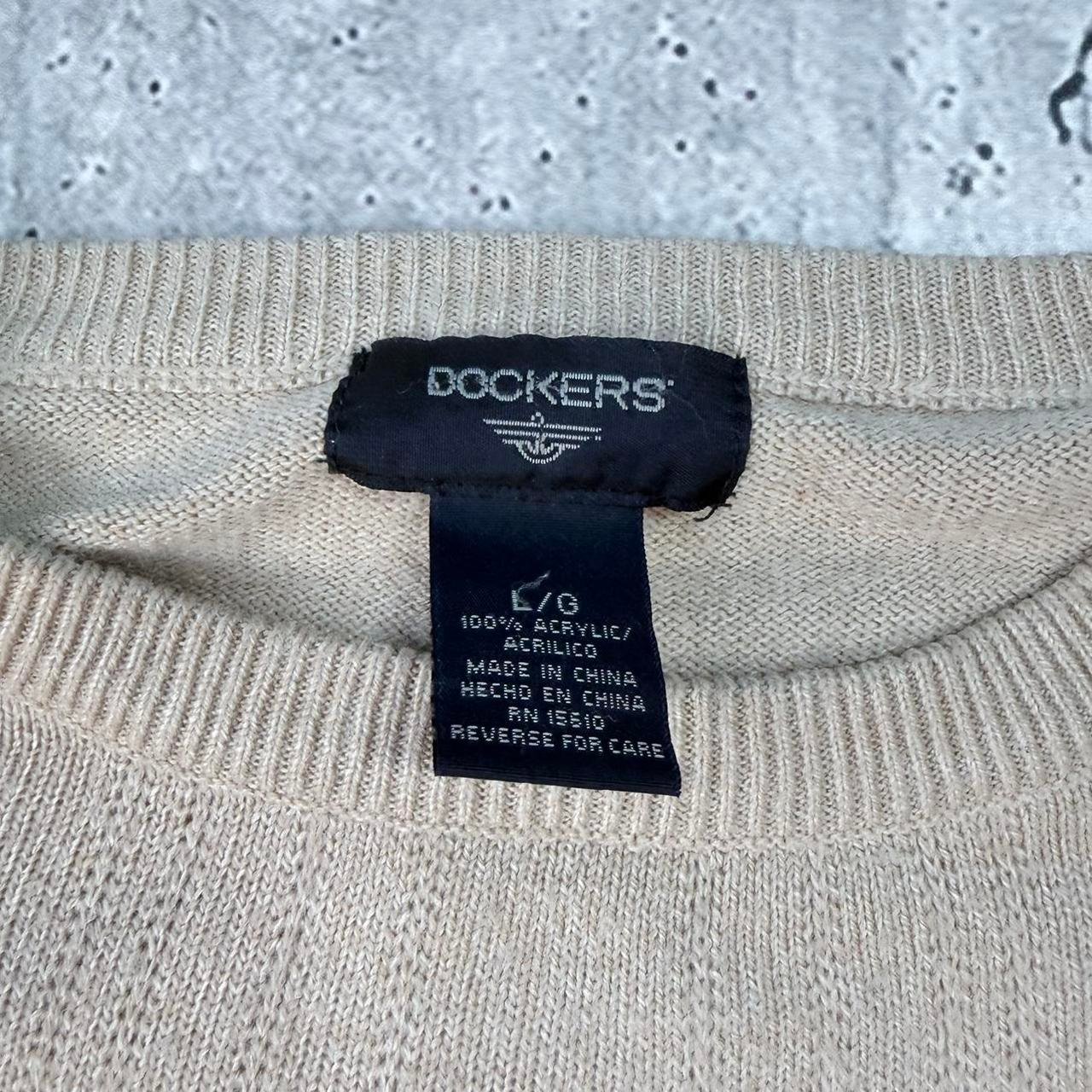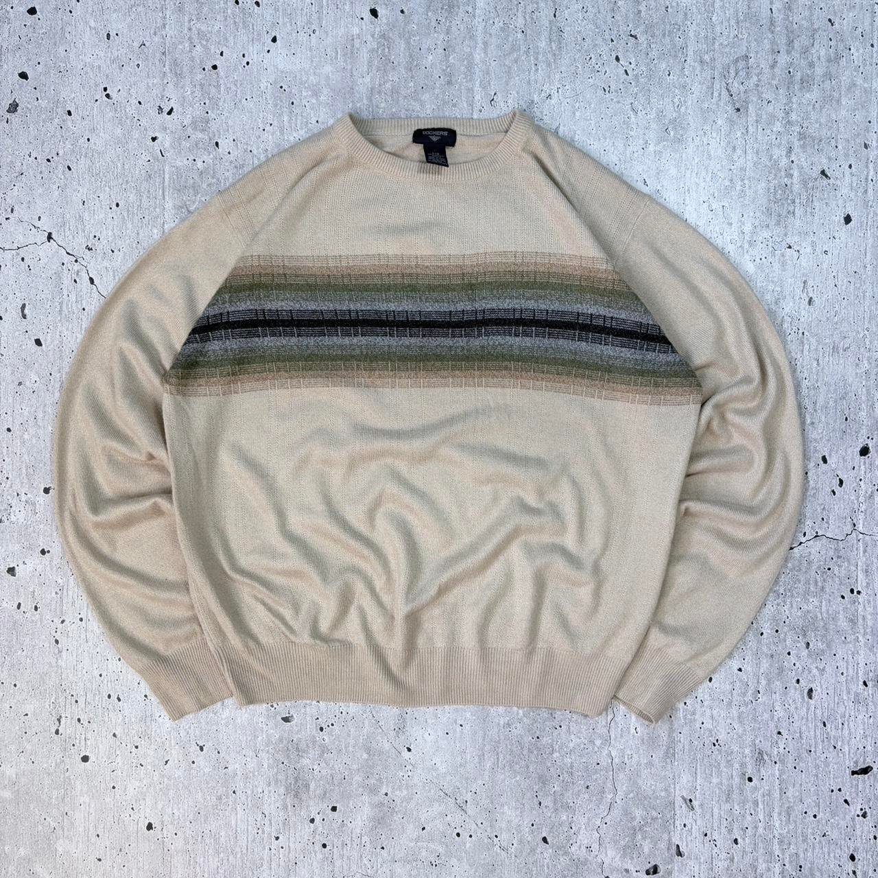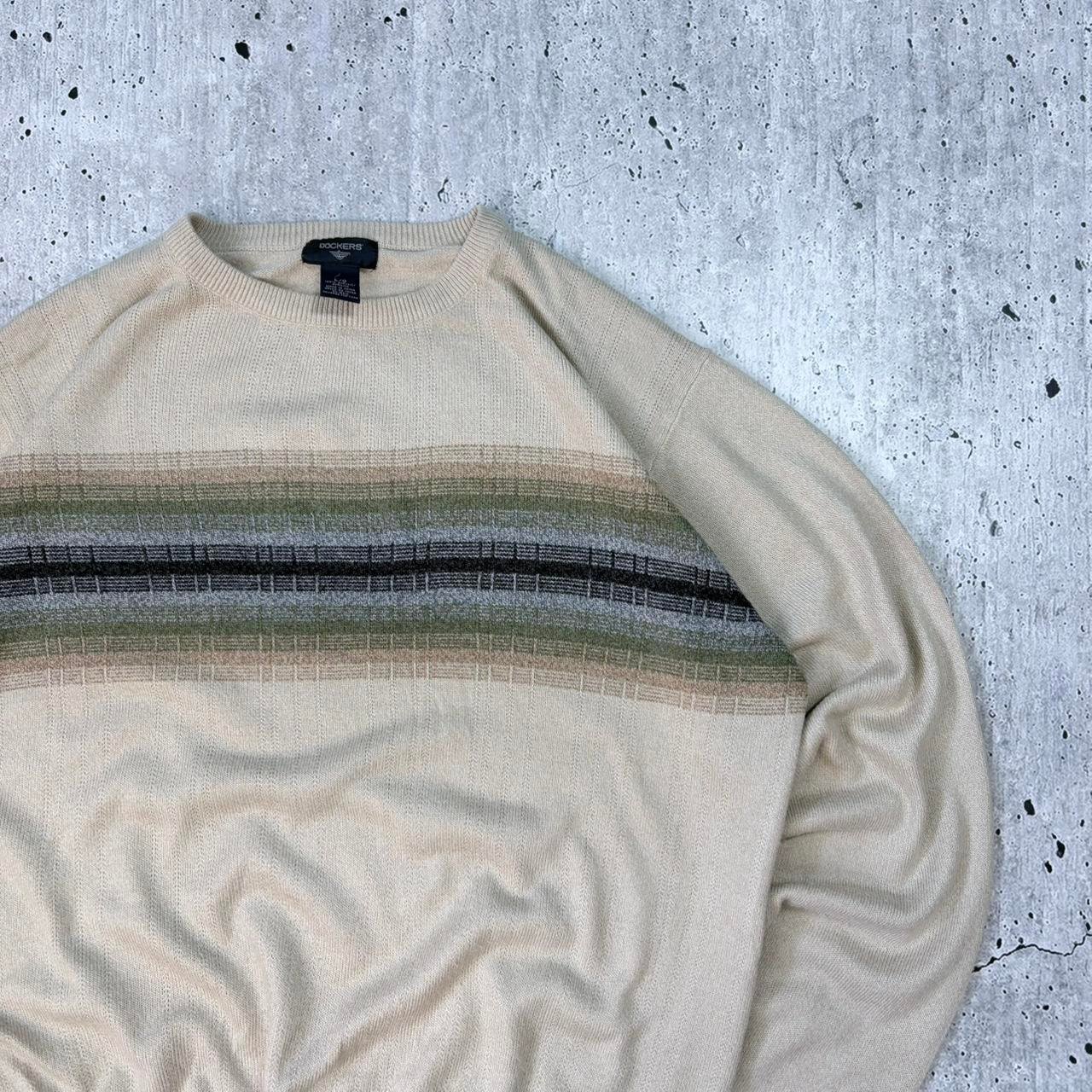 Cream Dockers pattern knit sweater with stripe pattern. Soft quality knitwear.