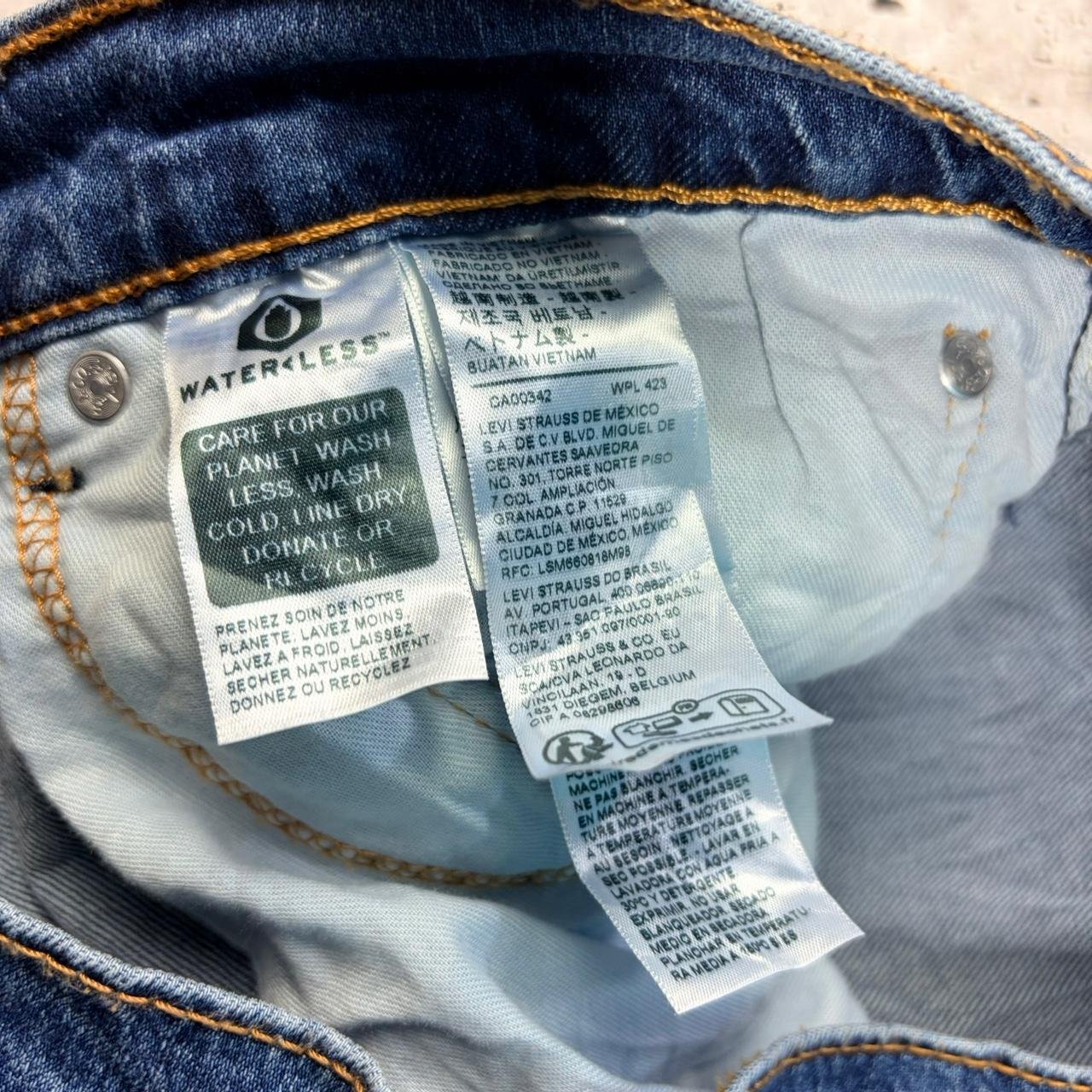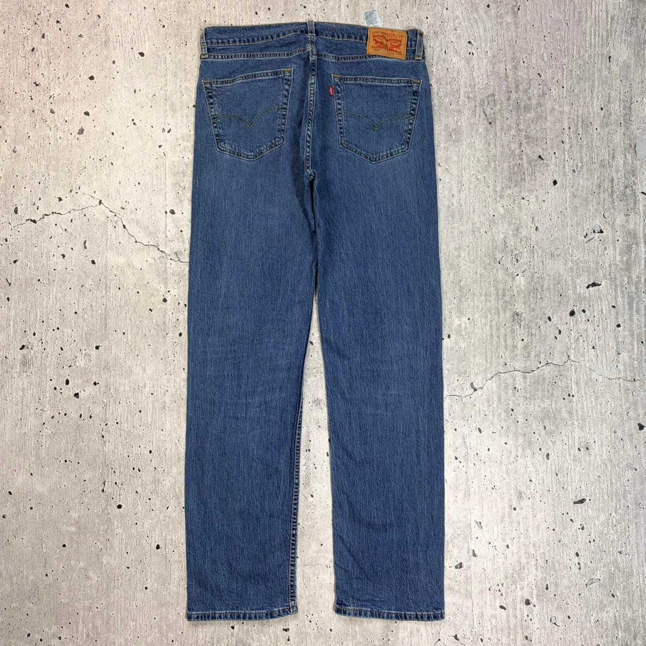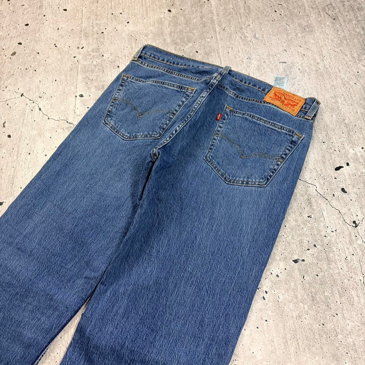 Blue straight leg Levi’s trousers with classic leather Levi’s logo patch on reverse. Great quality material.