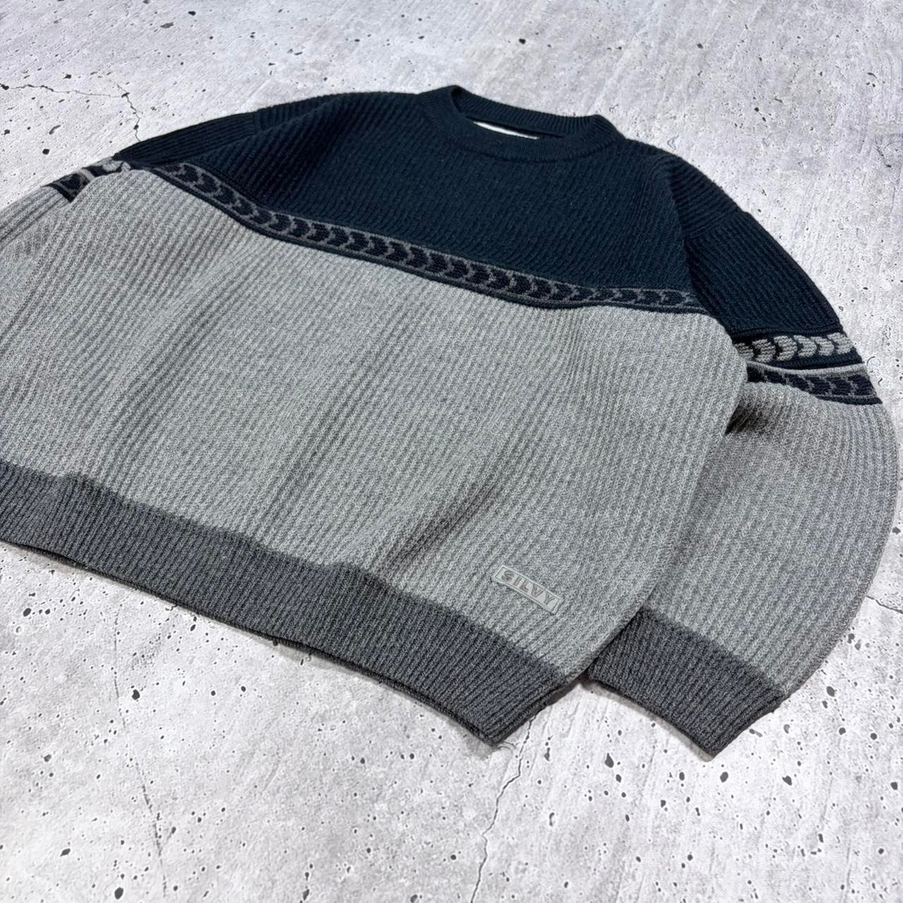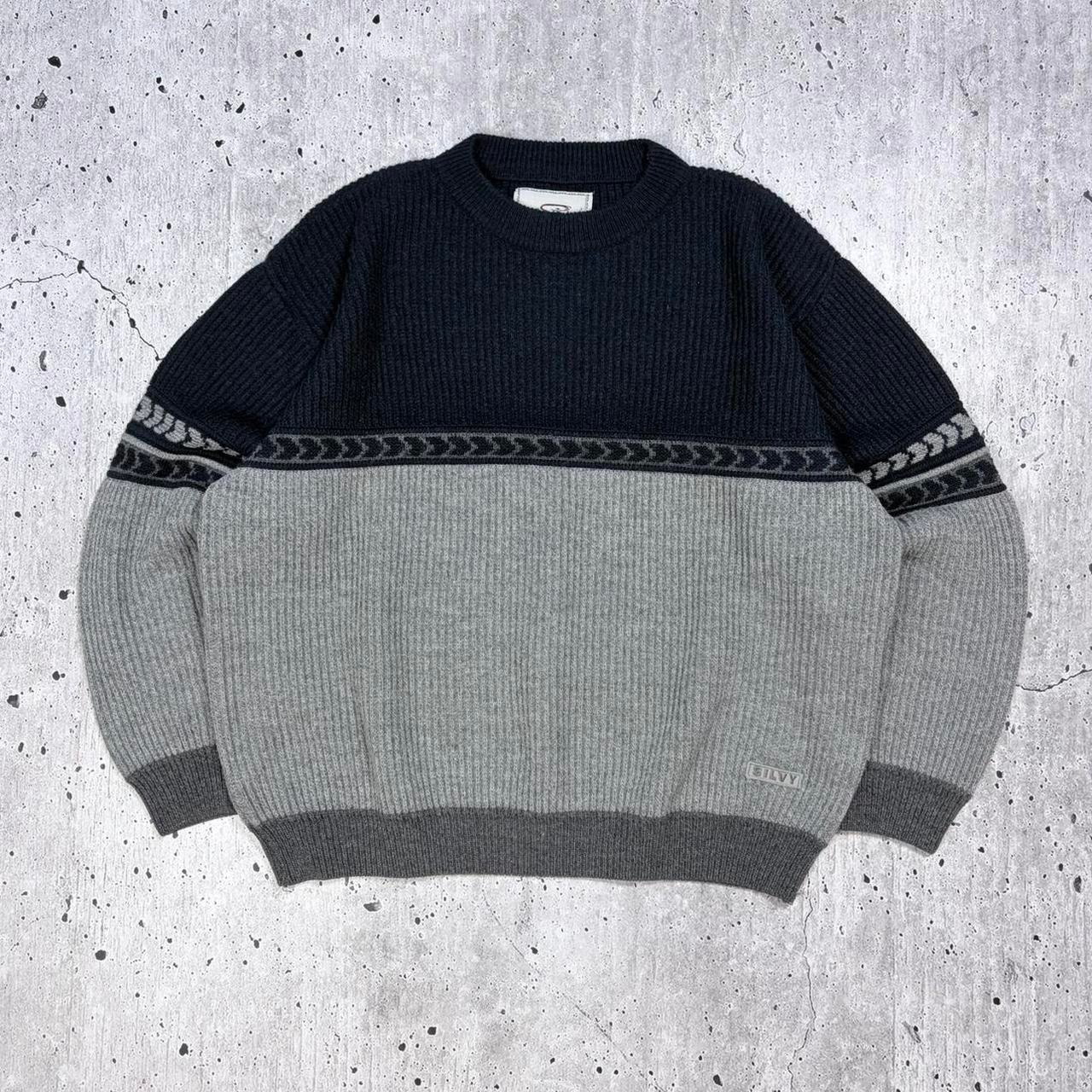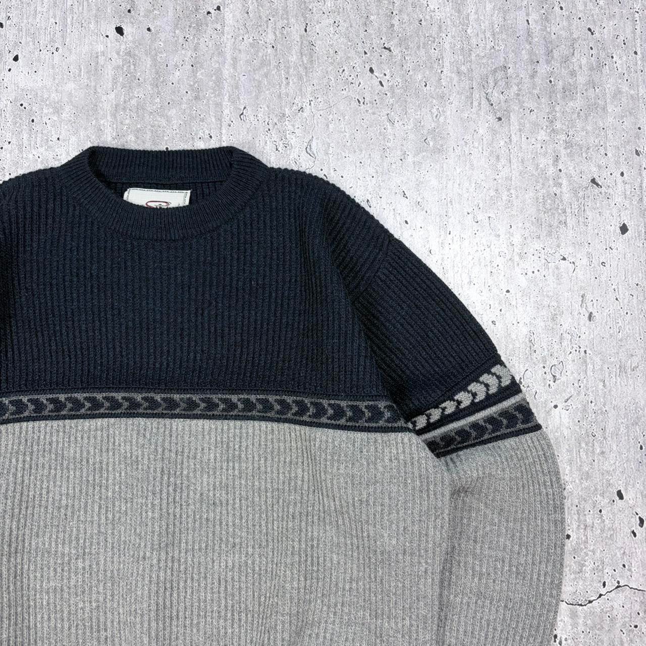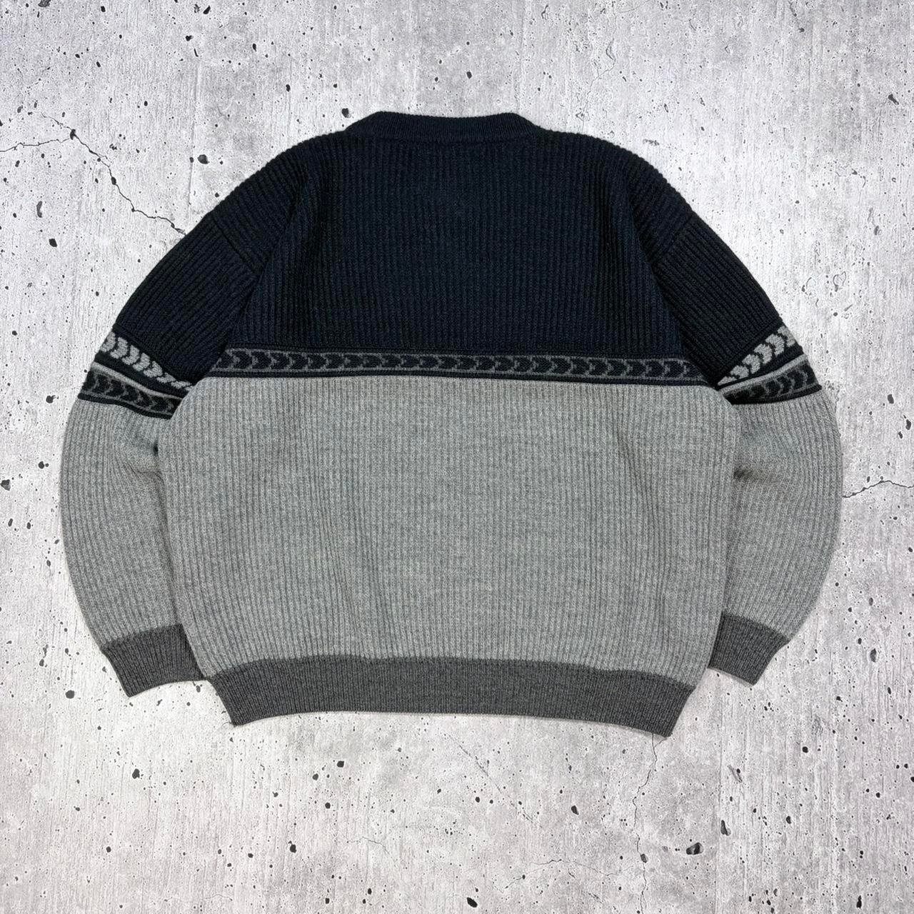 Vintage 90s navy and grey grunge pattern knit sweater.