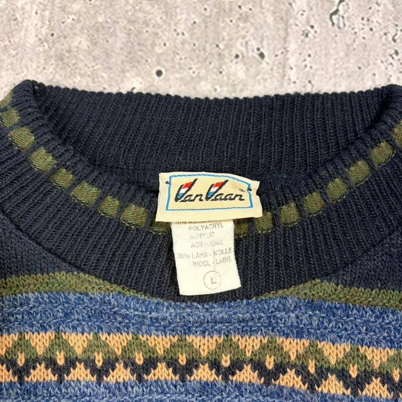 Vintage blue and brown cosby pattern knit sweater. Great quality knitwear.